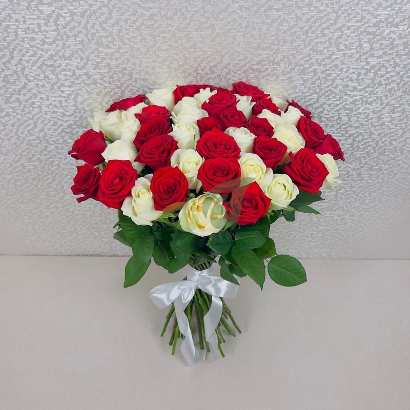 Букет "51 красная и белая роза" (60 см)